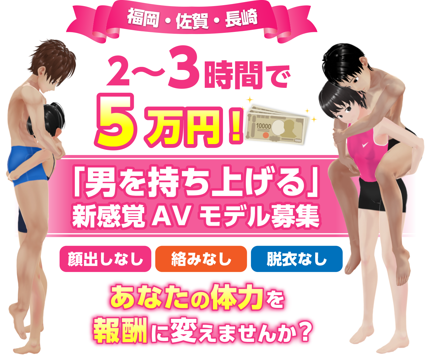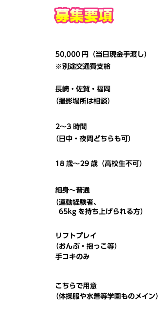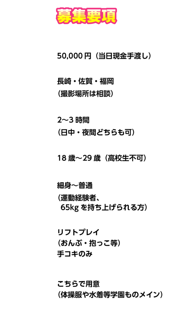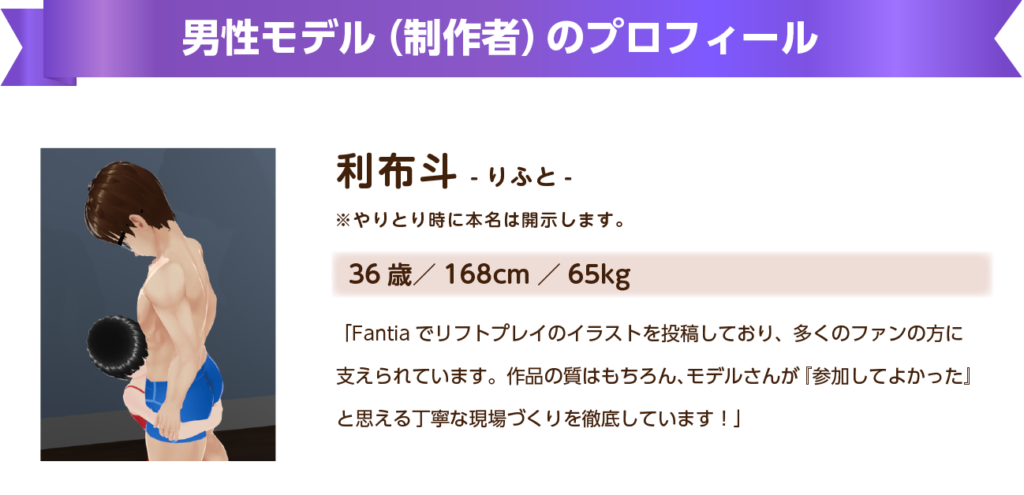 本プロジェクトは「男性を持ち上げる」というフィジカルな演出を含むため、事前の体型確認をお願いしております。