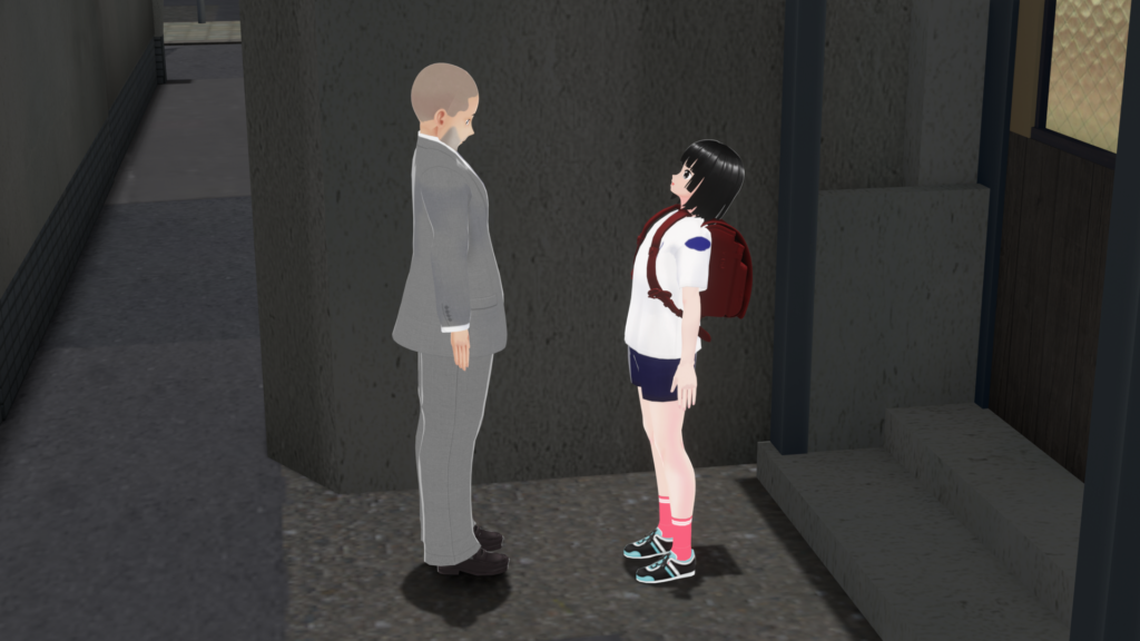 帰るように促すが、女の子のペースになりビルの裏に連れて行かれる。