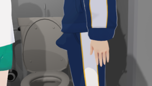掃除の時間。女子トイレ掃除をしている女子に呼び止められる男性教諭。
